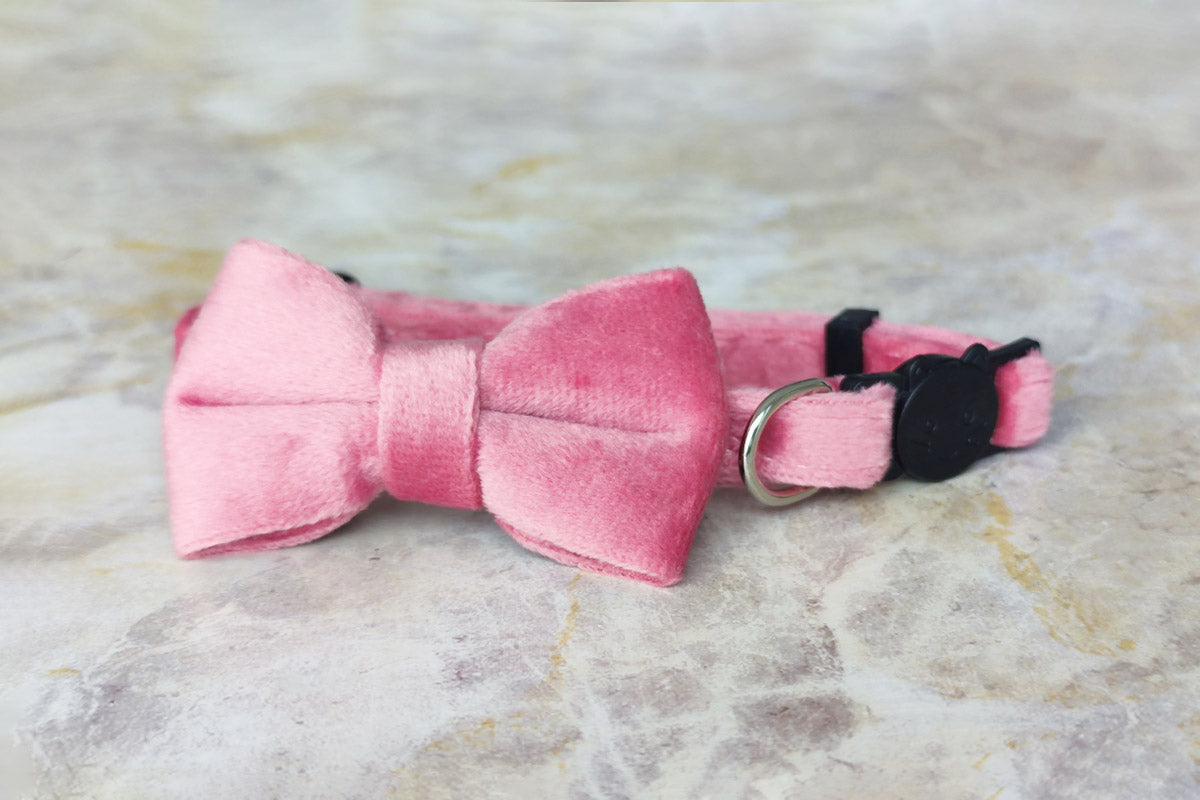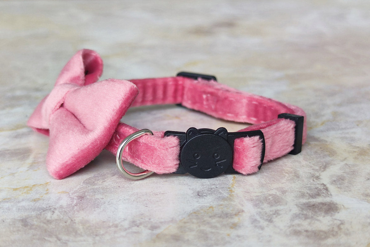 Coleira elegante e festiva, com laço removível, para gato. De veludo suave e fecho plástico preto com abertura fácil, é elegante e cheia de classe, perfeita colocar a medalha de identificação.