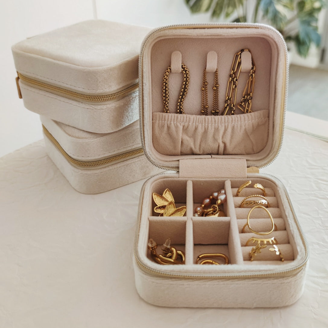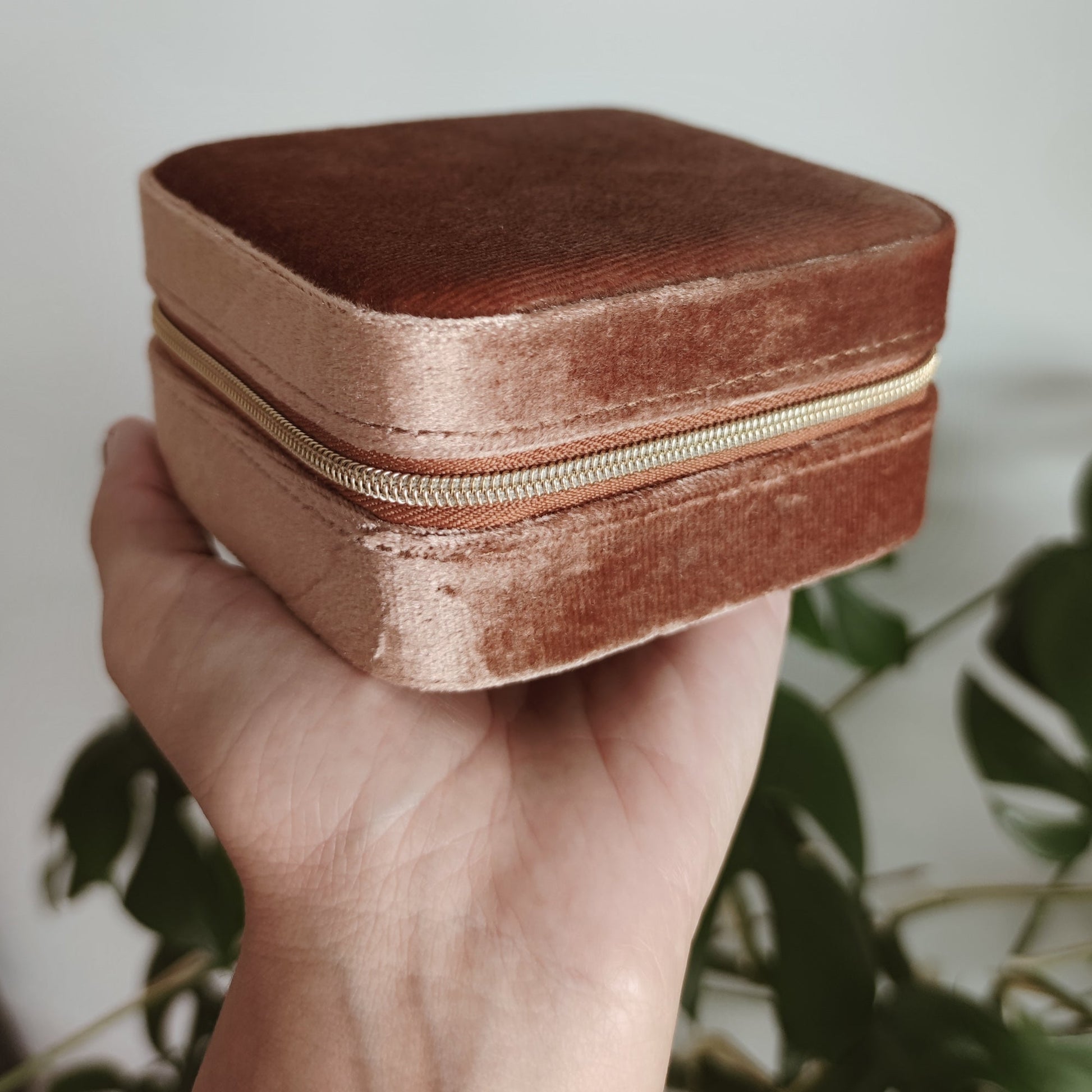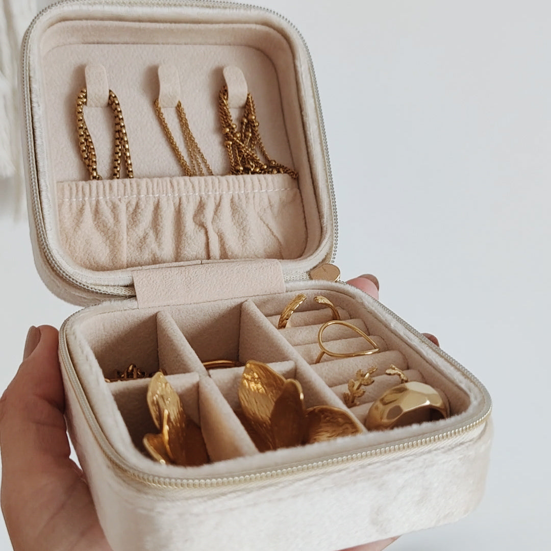 Aveludada, suave, versátil e muito bonita, mantém as tuas joias limpas, organizadas e seguras, em casa ou em viagem. É pequena e compacta, mas tem espaço para muitos acessórios. É prática para o dia-a-dia, e também para levar nas férias. É o presente perfeito para todas as amantes de joias.