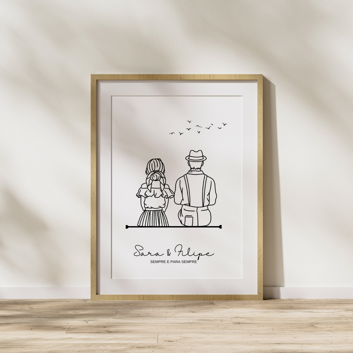 Arte personalizada para casais apaixonados, o presente perfeito para expressar amor e carinho. Personaliza a tua obra de forma única, captando a essência da tua relação. Escolhe o desenho que mais te representa, e o que mais representa a tua cara-metade. Nós tratamos de tudo e enviamos-te a tua arte por e-mail em 24 horas.